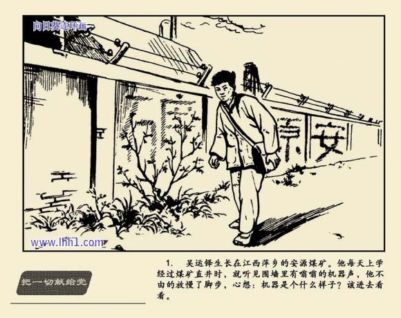 吴运铎生长在江西省的安源煤矿,因他家庭贫苦,十几岁上就当了煤矿工人。他受尽了资本家的气,领导过工人罢工,后来他投奔了新四军,担任起军火生产的工作。